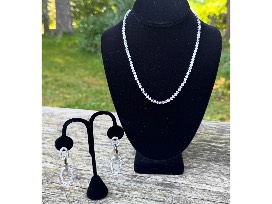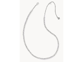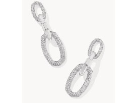 Set consists of the Emery Silver Tennis Necklace in White CZ, rhodium over brass with a lobster clasp with single adjustable slider bead and 19 inch chain plus Emery Silver Statement Earrings in White CZ, rhodium over brass with an ear post and measuring 2.3 inches long x .7 inches wide.
