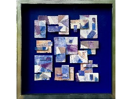 Clouds by Rob DeBartolo monotype/assemblage, 16 x 16 inches framed.