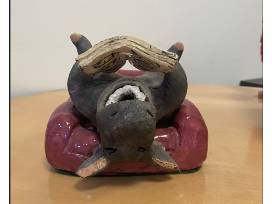 With its delightful details, from the textured finish and toothy grin to the hand-painted book, this unique artwork captures a sense of humor, imagination, and cozy relaxation. Perfect for art lovers, readers, or anyone who appreciates quirky, conversation-starting decor.