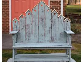 Add charm and character to your outdoor space with this beautifully handcrafted wooden bench. Featuring a unique, decorative high-back design and a soft, weathered finish, this piece blends rustic appeal with artistic craftsmanship.