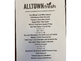 A perfect gift basket for the holidays. For you or guests, this basket contains the essentials for a great night. Two bottles of wine, wine glasses, crackers, nuts, chocolates, etc.. Included in this auction is $100 Gift Card to Alltown Fresh with multiple locations including Easton and Plymouth. Check out their catering and you'll be happy you bid on this item.
