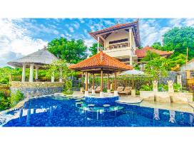Exquisite Luxury Boutique Micro Resort in Amed, Bali, is comprised of a Main House and two Private One Bedroom Villas surrounding the massive jewel-toned infinity pool and Swim Up Pool Bar, lush gardens, outdoor dining pavilion and bale massage. Each bedroom has a private entrance, an en-suite bathroom with waterfall showers, a King Canopy bed, and views of the stunning Indian Ocean. A feature you won't soon forget is the hand-formed stone -loaded pool lounger clique. Dragon statuary fountains cascade water on your sun-drenched body as you gaze across the infinity pool's endless views of the Indian Ocean. Take a long soak after breakfast, and you'll find that mornings turn to days and days turn to nights, each day slipping by effortlessly as the all Balinese staff caters to your every need.