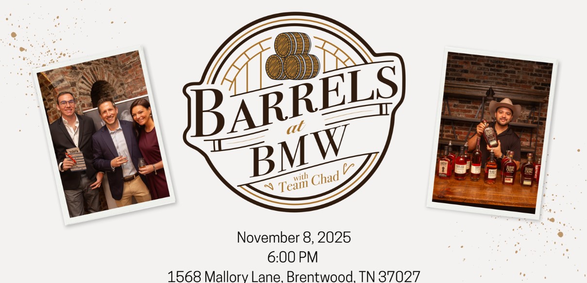 Barrels at BMW is an evening of bourbons, whiskeys, scotches, tequilas and fine wines specially curated by Cool Springs Wine and Spirits.