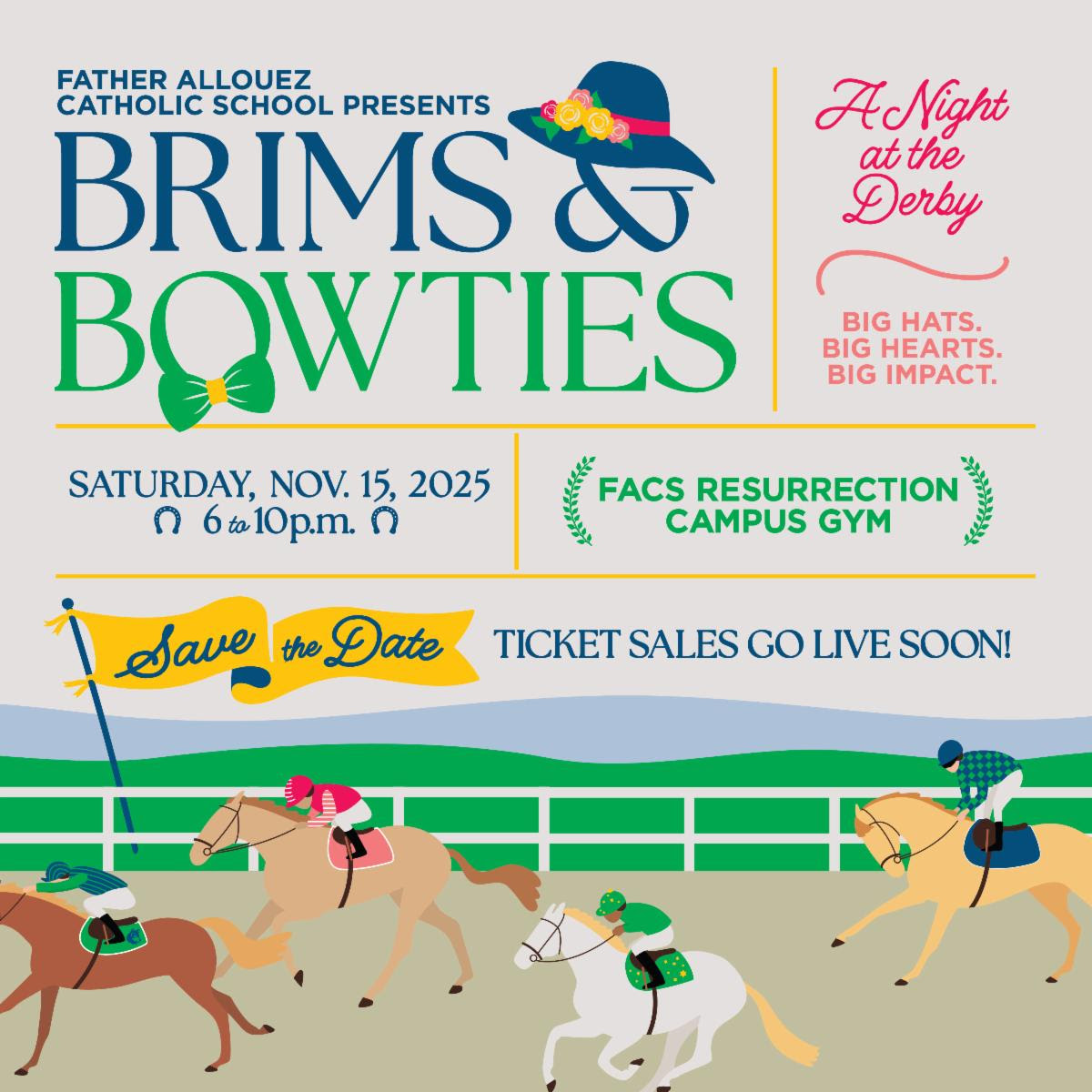 Thank you for your continued support of Father Allouez Catholic School. We are excited to invite you to our annual fundraiser Brims & Bowties: A Night at the Derby, on November 15 from 6-10 PM! Only guests and volunteers 21+ are allowed in the gym.