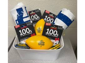 Donated by Vanderhorst Financial Services in Sidney, this generous raffle basket includes $100 in gift cards (four $25 cards) perfect for treating yourself, plus Lehman Catholic Swag (t-shirt, football, and bracelet) to show off your Cavalier pride. Thank you to Jerry Vanderhorst and his son, Adam Vanderhorst, both proud Lehman alumni, who continue to give back to their community and alma mater. Value: $100