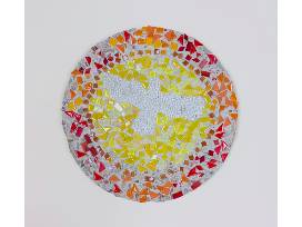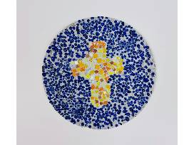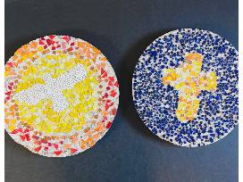 Mrs. Carroll's and Mrs. Chapman's 5th grade students used cement and colorful rocks to create two beautiful stepping stones to " Light a Path" in a friend's garden. Glass mosaic dove and mosaic cross.
