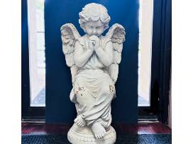 Elevate your garden or home exterior with this angelic statue. This praying angel is peacefully sitting on a pillar and is made of white resin with flecks of gold leaf.