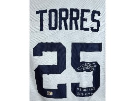 Score big with this officially signed Gleyber Torres jersey! Now playing for the Detroit Tigers, Gleyber is a three-time All-Star and one of the most exciting infielders in the game. His bold signature is authenticated and the jersey is ready for display, perfect for any fan or collector.