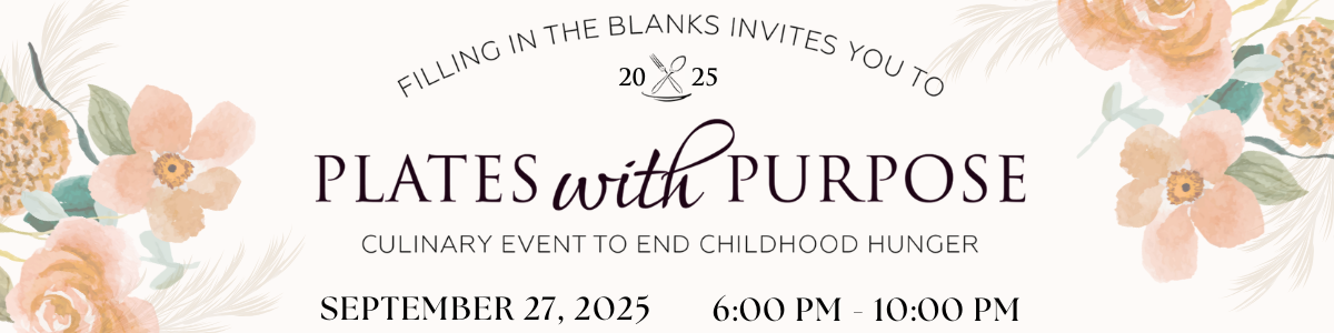 The evening will help raise funds to support Filling in the Blanks' mission to fight childhood hunger in local communities. We are excited to see everyone at Plates with Purpose 2025!