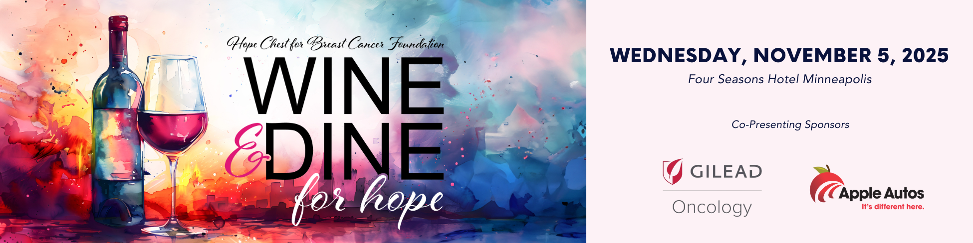 Join us for a spectacular multi-course seated dinner and wine pairing event that has become a favorite of our supporters, donors, community partners, and guests. This intimate evening at the Four Seasons Minneapolis includes culinary delights, sophisticated wine pours, live music, silent and live auctions, raffle, a digital photo opportunity, wine and spirits pull, breast cancer patient stories, high-energy auctioneer, and more! The proceeds continue to provide immediate financial support (housing, transportation, utilities, groceries, and adult/childcare) to breast cancer patients living in Minnesota.