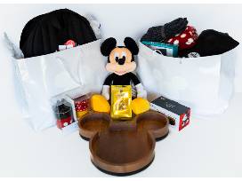 Inclusive of four, one day park hopper passes (expire 12/16/26). Prepare for all the Disney vibes with this sweet Mickey plush, Mickey charcuterie board with Mickey serving spoon, four Disney stemless holiday glasses, a Corkcircle, two Mickey espresso glasses, Mickey cream and sugar set, 7" digital photo frame to cherish your memories, set of 3 fuzzy Mickey socks, navy and black Mickey hat, and black Mickey backpack with gold Mickey backpack charm for your park day!