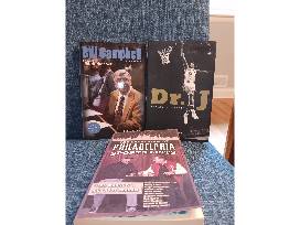 Flyers program signed by Bernie Parent, Dave Schultz, Joe Watson, Orest Kindrachuk, and Bob (Hound) Kelly. PLUS sports book bundle featuring Bill Campbell: The Voice of Philadelphia Sports, Dr. J: The Autobiography, and The Great Book of Philadelphia Sports Lists.