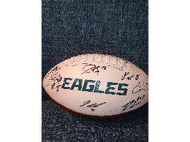 Take home a signed Eagles football, including signatures from Dick Vermeil, Zack Baun, Cooper DeJean and 15 others!