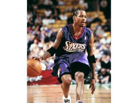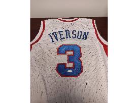 Take home a signed men's size XL Allen Iverson #3 Philadelphia 76ers white basketball jersey.