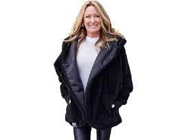 Stay cozy and chic with the TS Luxe reversible cardigan by Pretty Rugged. Features faux fur, waterproof satin lining, a zipper pocket, and is fully machine washable.