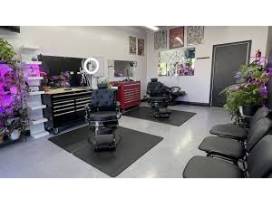 Barber shop offering haircuts and straight-razor shaves for men, women, and children.