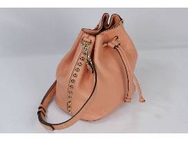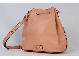 This Rebecca Minkoff purse is a stunning salmon color and will enhance your outfits. The bucket style purses has a draw string closure and measures approximately 8.5 " length x 5" wide x 8.5" height. It has an adjustable strap with 15"- 16" drop length.