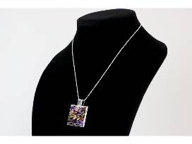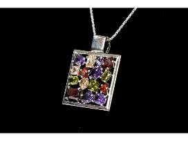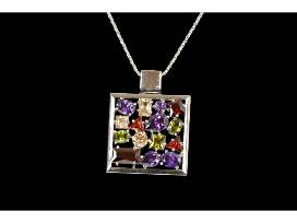 A sparkly silver pendant with multi-colored stones for the bling in you on a 18" Sterling Silver Chain. The drop length of pendant is 1 3/4" and width is 1 1/4"