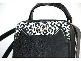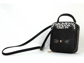 Enjoy this whimsical Kate Spade "Daisy" cross body purse from the "Meow" collection. This bag features a cat face silhouette complete with whiskers and a metal heart nose. Leopard print detailing and silver hardware. This versatile bag can be worn either crossbody with the removable long straps or by the top handle. This is the perfect accessory for any cat lover!