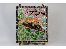 Make your home another Reid Park Zoo with this handcrafted red panda mosaic created by local artist Colleen Conlin at Crooked Tree Ceramics. Colleen's stunning work can be found throughout Reid Park Zoo as well as other popular locations around Tucson, AZ. This 15" x 18" sculptural mosaic features a red panda surrounded by cherry blossoms, bamboo shoots, and purple floral accents. Add this statement piece to your backyard garden for the perfect pop of color!