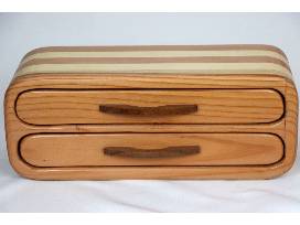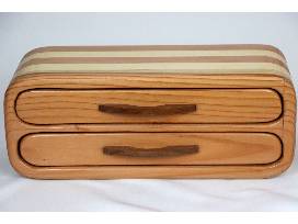 This striped handmade custom wooden box exudes mid-century modern style and charm. It has two spacious fabric-lined drawers perfect for stowing your favorite jewelry, watches, or other precious trinkets.