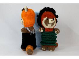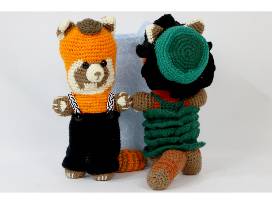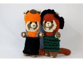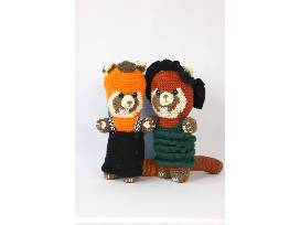 These two hand-crocheted red pandas are red-y to party in your home! Carefully made with soft yarn they have their own overalls and cute hats to compliment their outfits.