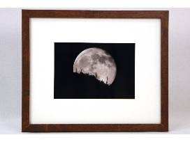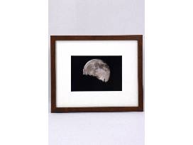 Framed and matted photo of "The Moon Rising Over the Tucson Mountains" is from the studio of "Heavenly Images". The neutral wooden frame is 9.5" by 11.5" and will be a standout in any room.