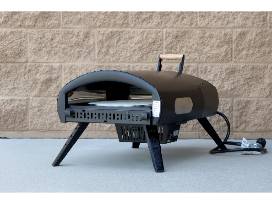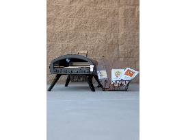 Set up your own pizzeria with this Bertello SimulFIRE rotating outdoor pizza oven. The 16" oven measures approx. 15" H x 17" W x 33"L and comes with everything to start your pizza party. Two kinds of dough mix, a peel for serving, and a professional grade slicer. You bring the wine!