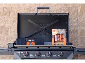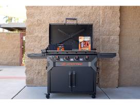 Blackstone Iron Forged Griddle is a top-of-the-line unit for all your cooking adventures. It is hooded with 4 burners, liquid propane and can be used anywhere your cooking needs take you. At 4ft H x 3ft W and 23" deep, this as wheels foe ease of movement. Package includes 4- piece pro griddle breakfast kit and 5- piece griddle tool set