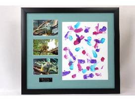 Mango, Toto and Mateo had a fun time creating this painting just for you. Our squirrel monkeys are talented and cute. This matted and framed picture is 20" x 22.75" and is priceless.