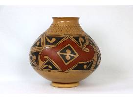 This large Mata Ortiz pot is decorated in the traditional Paquime style which is inspired by ancient Mogollon pottery found at the Casa Grandes archaeological site in Chihuahua, Mexico. This handcrafted pot would make an excellent addition as a statement piece!