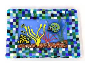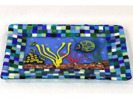 This marvelous 12" x 8" fused glass is reminiscent of a beautiful blue ocean. This piece is sure to add a calm feel to your home.