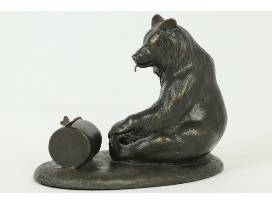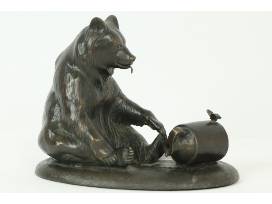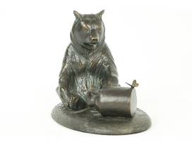 This stunning bronze sculpture by Paul Rossi is titled "Western Vignette." Created in 1999 by well-known Western historian and artist Paul Rossi, father of local sculptor Mark Rossi, this sculpture features a Grizzly bear, butterfly, and a small honey jug. Measures approximately 5" height x 6" width.