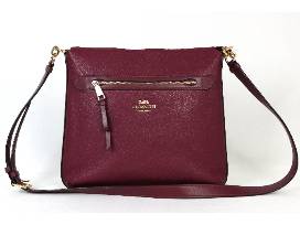 This Coach "Mae" crossbody leather bag is sure to add luxury to any look. This bag comes in pebble leather, it is in Burgundy and uses Gold hardware, and comes with an adjustable strap with B fabric inner lining.