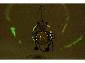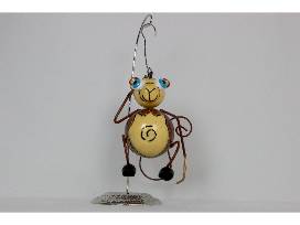 Ready to swing from your tree, this whimsical monkey is 5.5"L x 7"H x 5.5"W. Details include big blue eyes and gold long fingers, sure to bring a smile. This is made of weatherproof tin and can hold a standard tea light.
