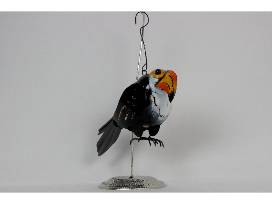 With moveable wings and a double tail, it can bring the jungle to you. Luminaria measures 8"L x 5.5" x 3.5"W and takes a standard tea light. Made of weatherproof tin.
