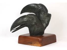 This exquisite bronze sculpture titled "Portraits of Toucans" is a stunning piece by well-known local artist Mark Rossi. It features two realistic toucans crafted from bronze and sits on top of a wooden base. This sculpture is a perfect piece for any art collector or animal lover. "Toucan't" pass up this unique art piece!