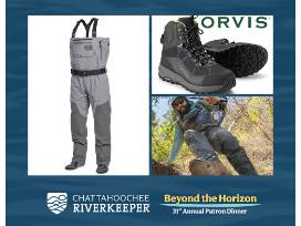 Not available for shipping; must be picked up from CRK's Smyrna office or taken home the night of the event from the venue. Waders and boots may be exchanged for the winner's correct sizes.