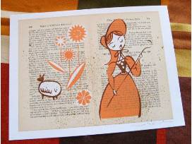 This original screenprint collage features the beloved nursery rhyme character Little Bo Peep, on the lookout for her lost sheep, who are just beyond a charming thicket of stylized flowers. This whimsical and colorful artwork brings the timeless story to life, perfect for any nursery or children's room.