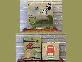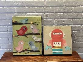 This charming trio of canvases adds cheerful color and playful energy to any room! Each signed piece features bold, graphic characters that capture the imagination: