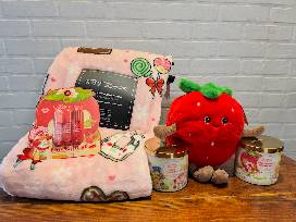 Indulge in the sweetest escape with this cozy strawberry-themed package!