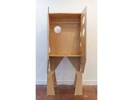 Circle Wardrobe, 2025, Maple Veneered Plywood, Nylon Cord, Oak Rod, 36 x 20 x 84 inches
