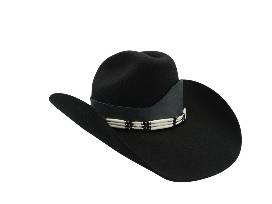 - A sculpted black Western-weight hat, handcrafted from 100% felt and finished with a wide curved brim, smooth black leather accents, and a striking handmade bone trim. Elevated by a bespoke silver-plated horseshoe pin by Modern Monarchie.