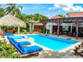 This luxurious four-bedroom, five-bath private villa in La Romana, Dominican Republic, offers the perfect getaway for couples or families.