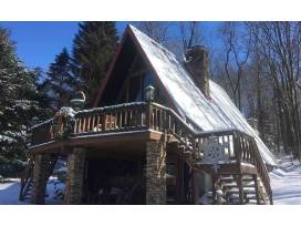 Tall Cedar Chalet is a unique 3 story A-frame constructed of stone and cedar set on a secluded 1-acre lot just 2 minutes to the Seven Springs 4 season resort