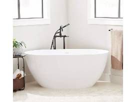 Add modern elegance to your bathroom with the 66" Patera Solid Surface Freestanding Tub. With a contemporary oval design, this stylish centerpiece boasts a glossy white finish that instantly brightens your space. Finish the look with a complementing tub filler.