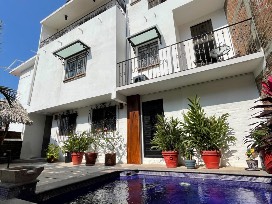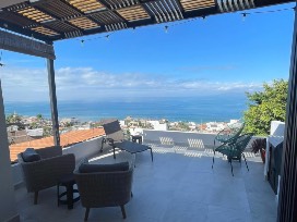 Casa Bella Vista is a unique accommodation broken up into three beautiful units; each one-bedroom apartment has a king bed, a kitchenette, and access to a pool terrace with grill and palapa bar. Two units also have a sleeping couch (great for kids). There is an additional king bed in the aqua studio near the pool on the terrace level. Winning bidders can claim one unit, or book the entire house, making the Casa Bella Vista perfect for a couple's getaway, or a family or friend reunion. Filling the entire house means unlimited use of the new rooftop kitchen, grill, and terrace with amazing views overlooking historic Old Town and the entire Banderas Bay. The house can sleep up to 10, but is recommended for 8 if your party is limited to adults.