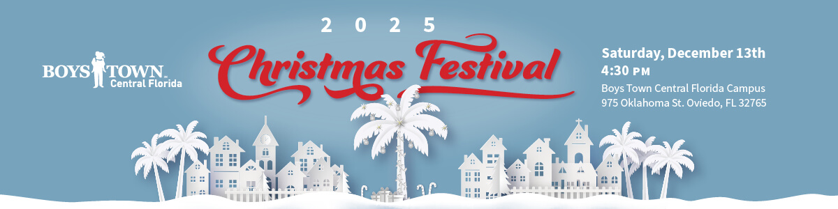 Celebrate with us as we hear from some of our youth and share more about the lives that are impacted through Boys Town Central Florida. The evening will be filled with magic from our new "Kids Zone" with fake snow to our local community restaurant partners serving small plates, coffee & cocoa - all while taking in Christmas lights, décor and sounds of the season!