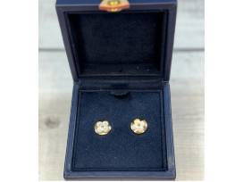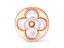Louis Vuitton Color Blossom BB Sun Earring Studs, pink 18k gold and white mother-of-pearl. Color Blossom pieces celebrate the emblematic Monogram Flower, designed in 1896 by Georges-Louis Vuitton, son of the founder. Set into 18-karat pink gold, this precious ear stud features a Sun motif carved from white mother-of-pearl, hand-polished to a high gloss. Months of work were necessary to perfect the stone's subtle curves and sparkle. This delicate ear stud is an invitation to stack, mix or match with other models from the collection