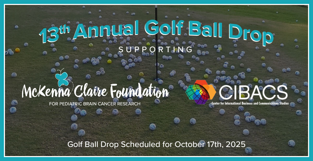 CIBACS (Center for International Business and Communication Studies) is partnering with the McKenna Claire Foundation (MCF) to raise funds for both pediatric brain cancer research and CIBACS. Over the past 13 years, MCF has donated over $192,000 to our local schools in partnership with the Play It Forward Golf Tournament and Golf Ball Drop. CIBACS will receive 50% of the proceeds for every ball sold by CIBACS students. The first ball in the hole or closest to the pin will win $2,500!!! All purchased balls will be assigned a number and be part of the helicopter golf ball drop being held just before sunset on Friday, October 17, 2025 at the Tijeras Creek Golf Club. Balls are $10 each. The winner does not need to be present to win.